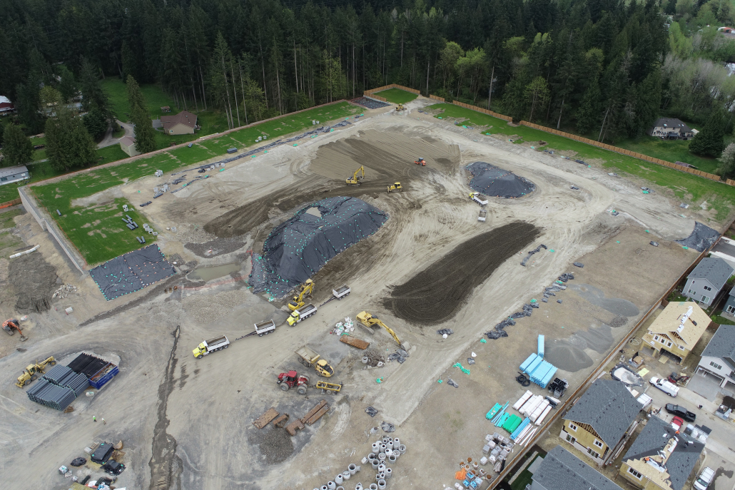 The project successfully addressed challenges through strategic planning and adaptability. A primary focus was the import of fill for utility installations, necessitating a carefully sequenced schedule for prompt commencement of utility work. The 15-acre site presented erosion control challenges, requiring constant adjustments to comply with Temporary Erosion and Sediment Control (TESC) measures. We also faced pandemic-related disruptions resulting in delays and product unavailability. Proactive collaboration with suppliers and engineers was crucial in overcoming these challenges.