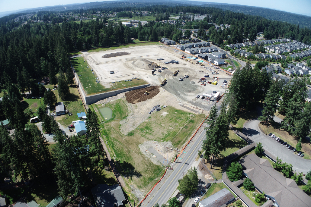 Northwest Construction, Inc. serves as the general contractor for this project. Our responsibilities include clearing, sitework, utilities, off-site utilities, frontage improvements, and traffic control. 280,000 cubic yards of dirt was imported to achieve final grades for the project. Additionally, we incorporated 31,000 square feet of lock and load walls, installed 21,800 linear feet of combined storm, sewer, and water systems, and executed 15,000 square yards of site grading encompassing surfacing and lots. The project site spans 15 acres and features a substantial storm detention vault. Managing multiple subcontractors, the project is situated in a densely populated neighborhood with two schools located across the street.
