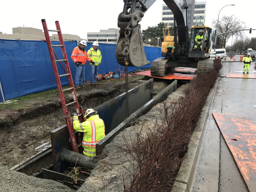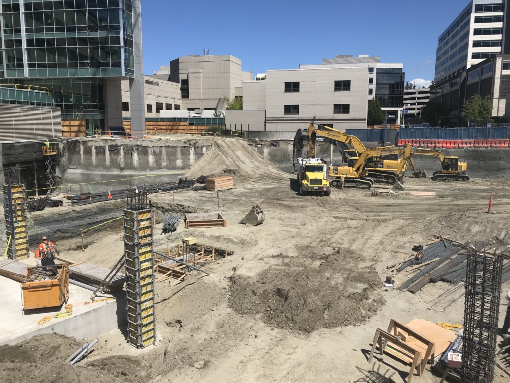 We were responsible for the demolition, erosion control, utility installation (water/storm/sewer), right-of-way night work, shoring support, underground parking excavation, export of excess soils, structural excavation, surface improvements, MEP trenching, and traffic control work for the new campus and medical tower.